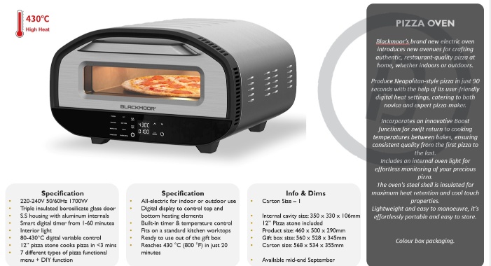 BLACKMOOR ELECTRIC PIZZA OVEN