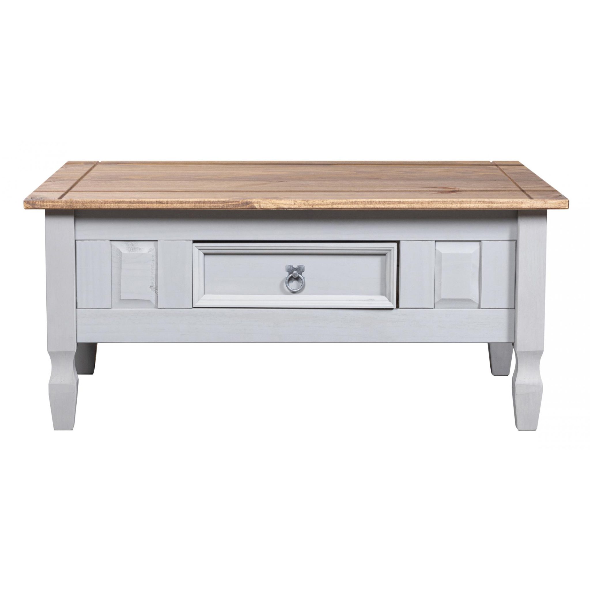 Corona Grey Coffee Table 1 Drawer, 1000W x 600D x 460H, Distressed Solid Waxed Light Pine