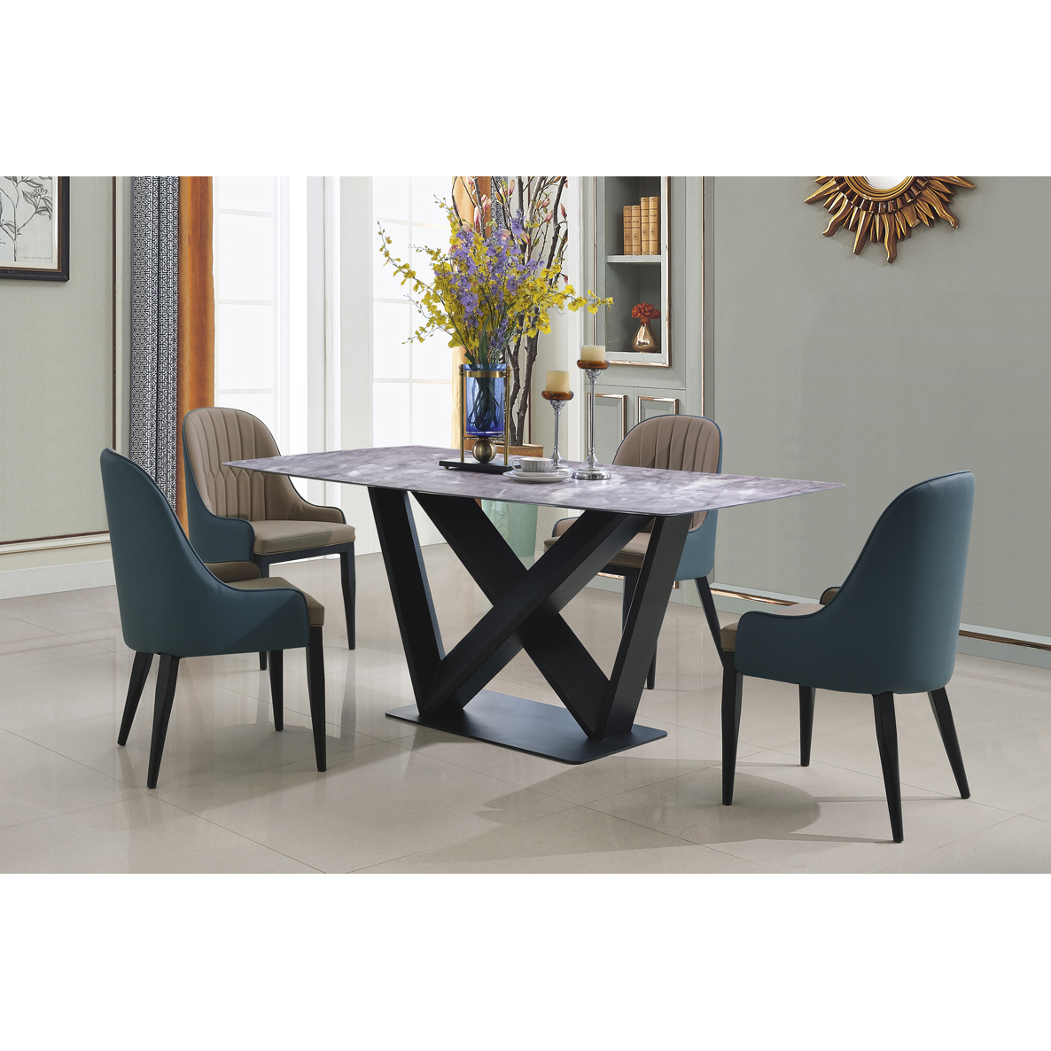 Natural Stone with Marble Effect and Lacquer Finish, Black Metal Base 1600W x 900D x 750H