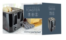 KITCHENPERFECTED BLACK 4 SLICE EXTRA WIDE SLOT TOASTER