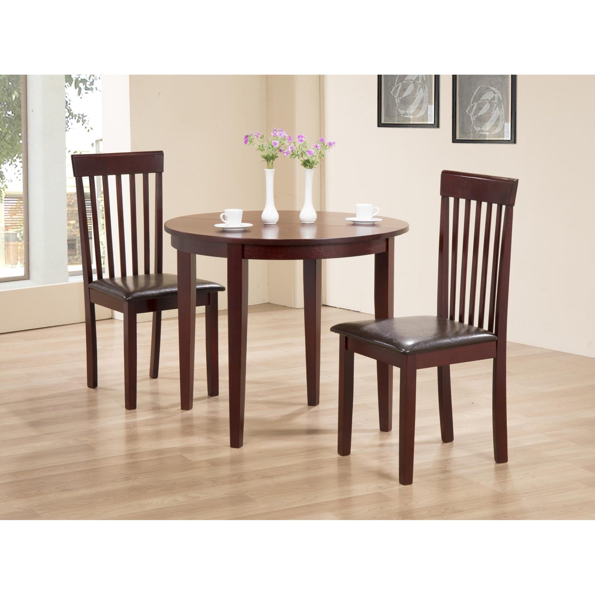 Lunar Extending Solid Rubberwood 900W Round Opened Folds to half size, 2 Chairs Oak, Natural, Mahogany