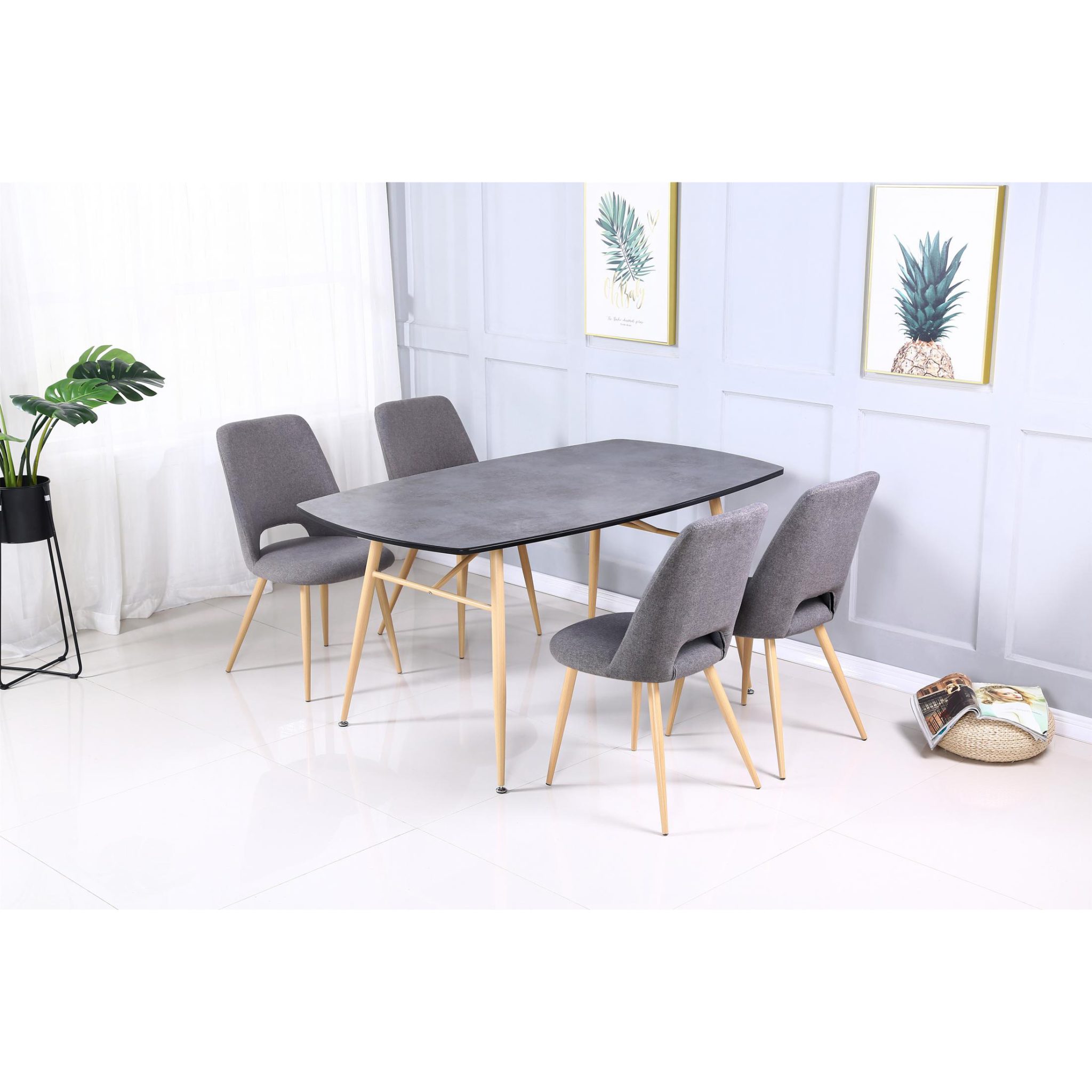 Fabric Grey Chairs with Metal Legs Beech