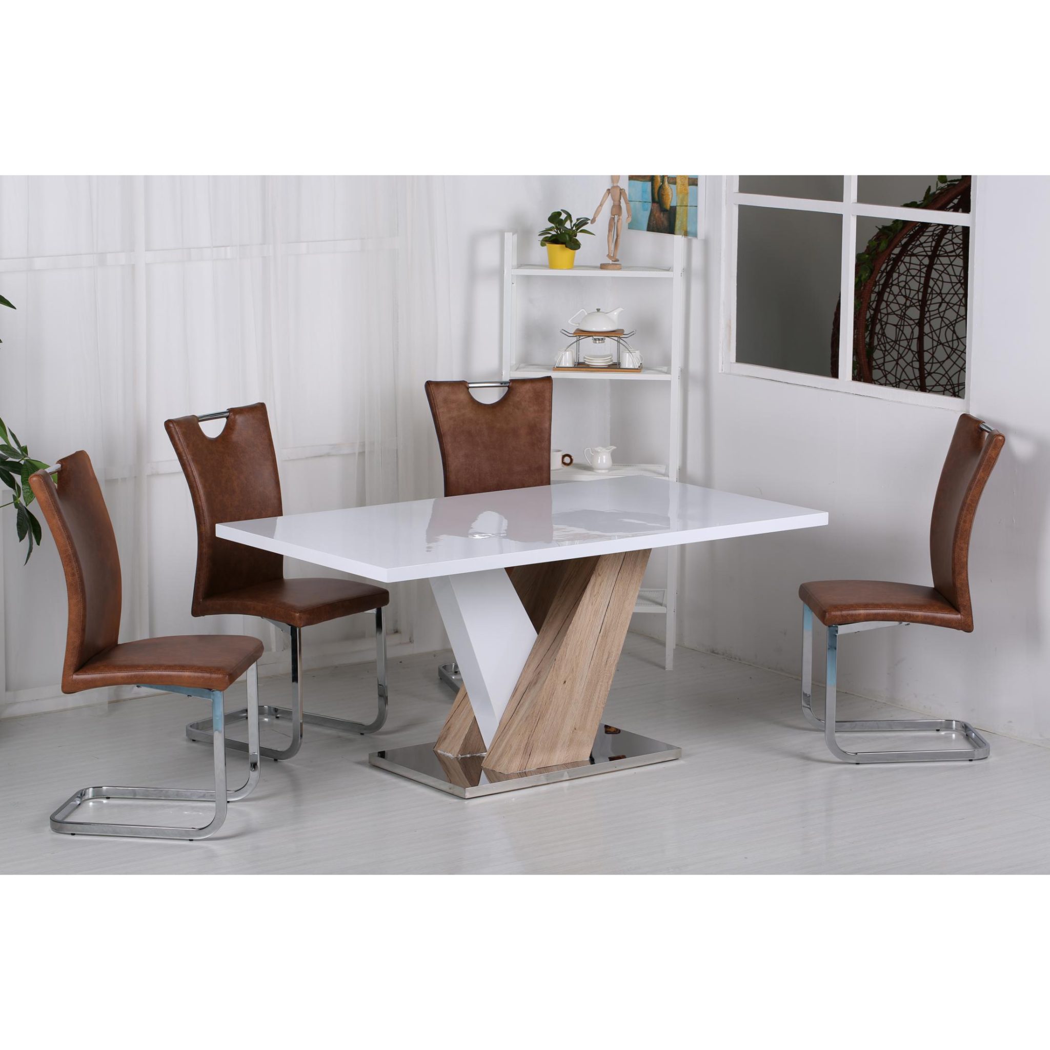 Natalie Whte High Gloss Top with Stainless Steel Base, White & Natural