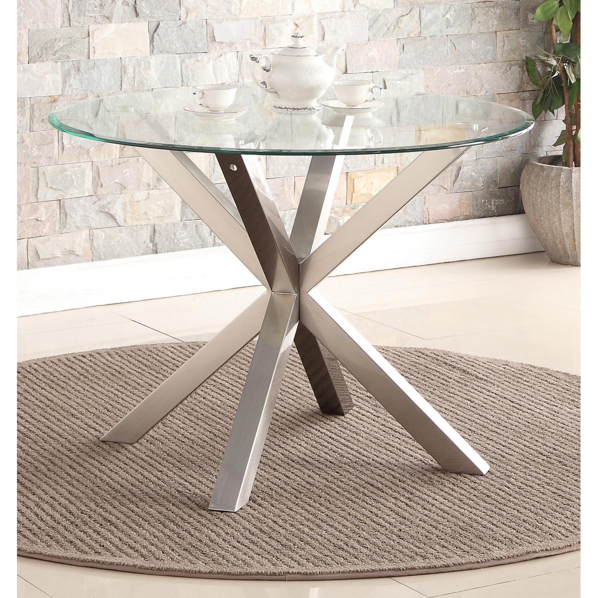 Dining Table, 1100W Round x 750H, Glass Top with Brushed Stainless Steel Legs