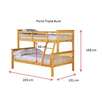Porto Triple Sleeper.Top Single, Bottom 4 Foot.Pine.White Wash.Splits into two beds