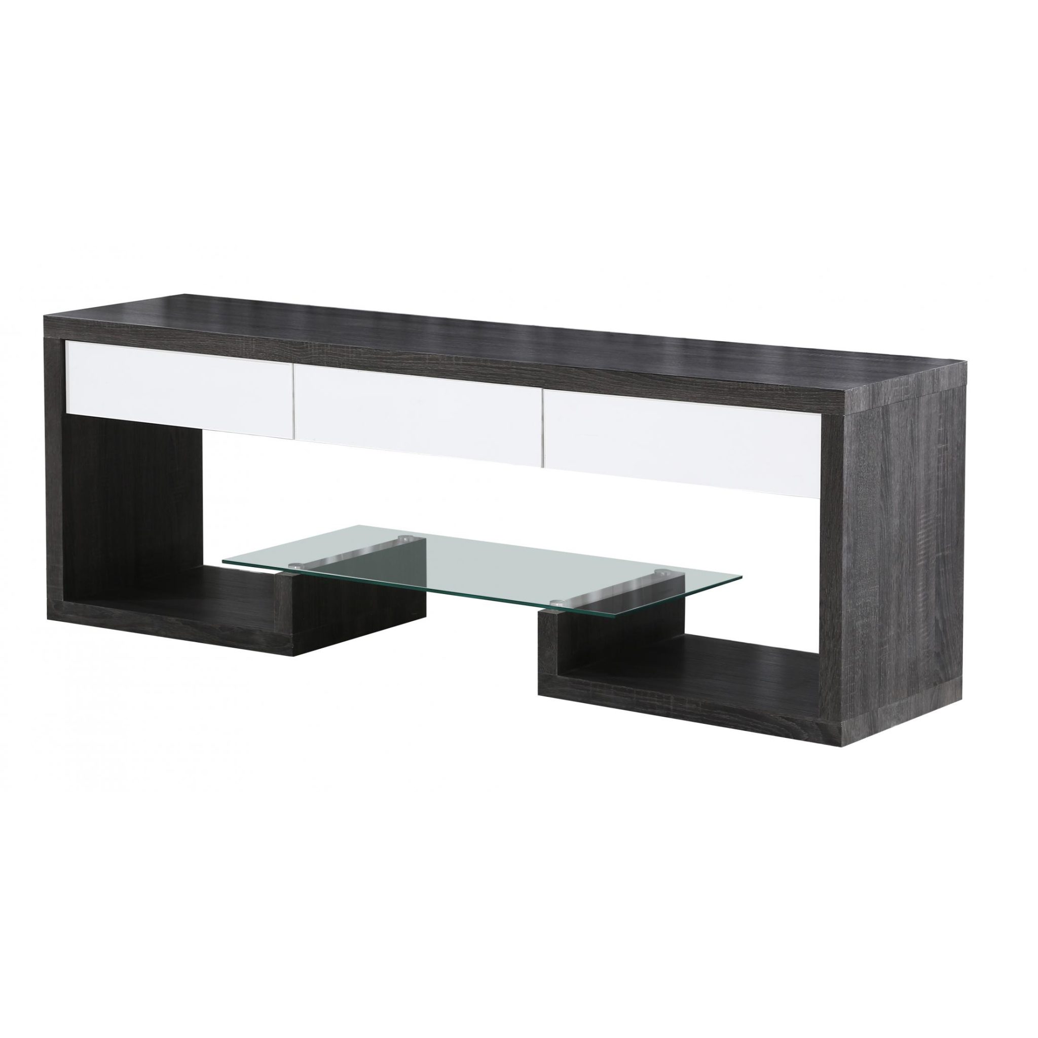 Samba TV Unit 3 Drawer Black with White High Gloss Drawers 1600W x 400D x 550H Black Oak Effect