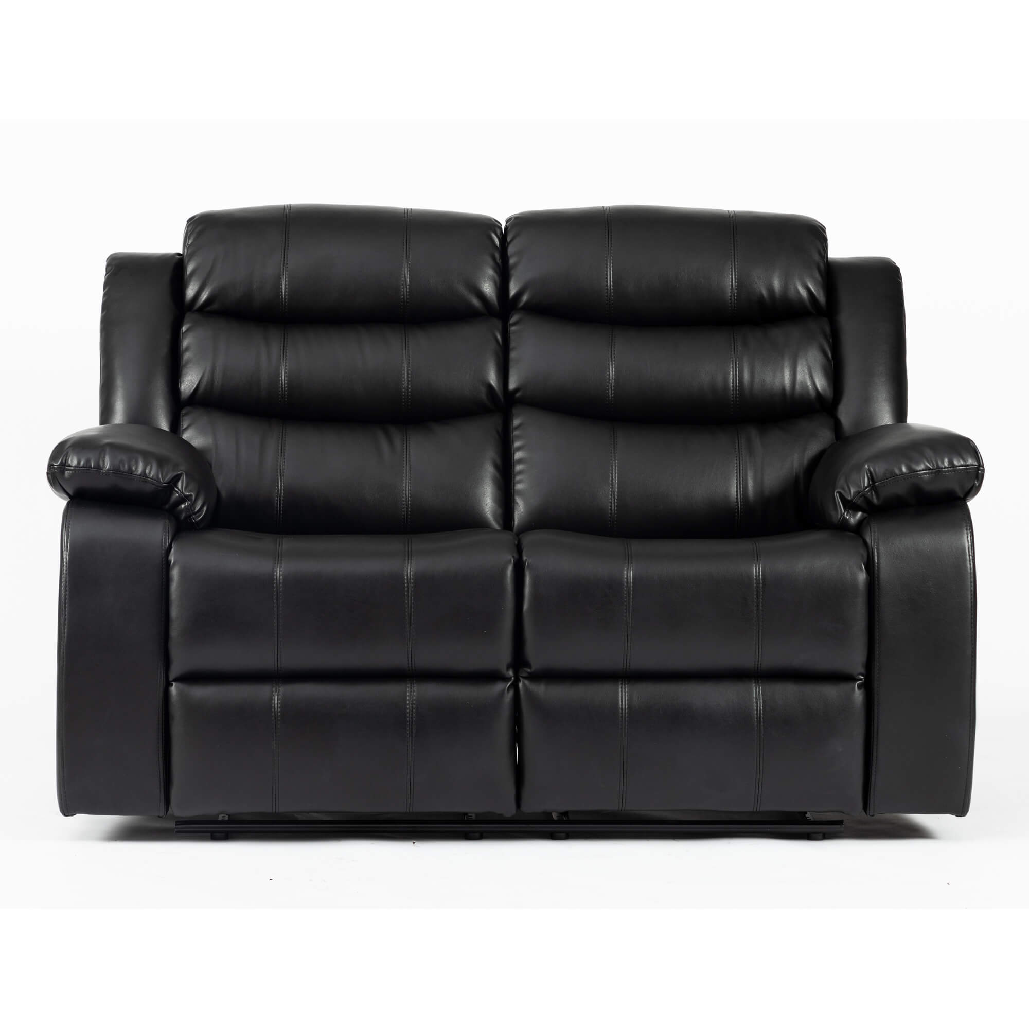 Turin Recliner Leather Aire 2 Seater Black, 1520W x 970D x 1020H
